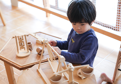 手作り玩具を使い、楽しみながら手指の細かな動きを向上させるプログラムです。