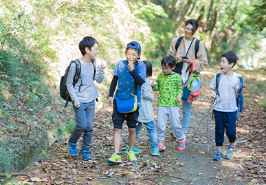 屋外での体験を通じて、自然に対する理解を深め、社交性の向上を育むプログラムです。